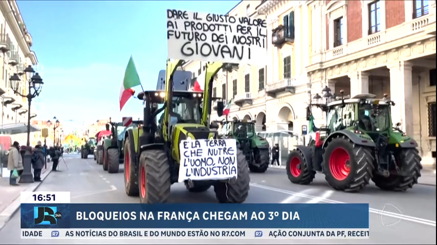 Agricultores franceses bloqueiam estradas pelo terceiro dia à medida que os protestos se espalham pela Europa. O governo francês aumentou a segurança para impedir o avanço dos produtores rurais. A categoria pede a flexibilização de regras ambientais e melhores pagamentos. Na Bélgica, onde líderes da união europeia se reúnem para uma cúpula, manifestantes bloquearam as estradas. Agricultores italianos e espanhóis também se juntaram aos atos, que pedem mudanças no acordo entre União Europeia e Mercosul.