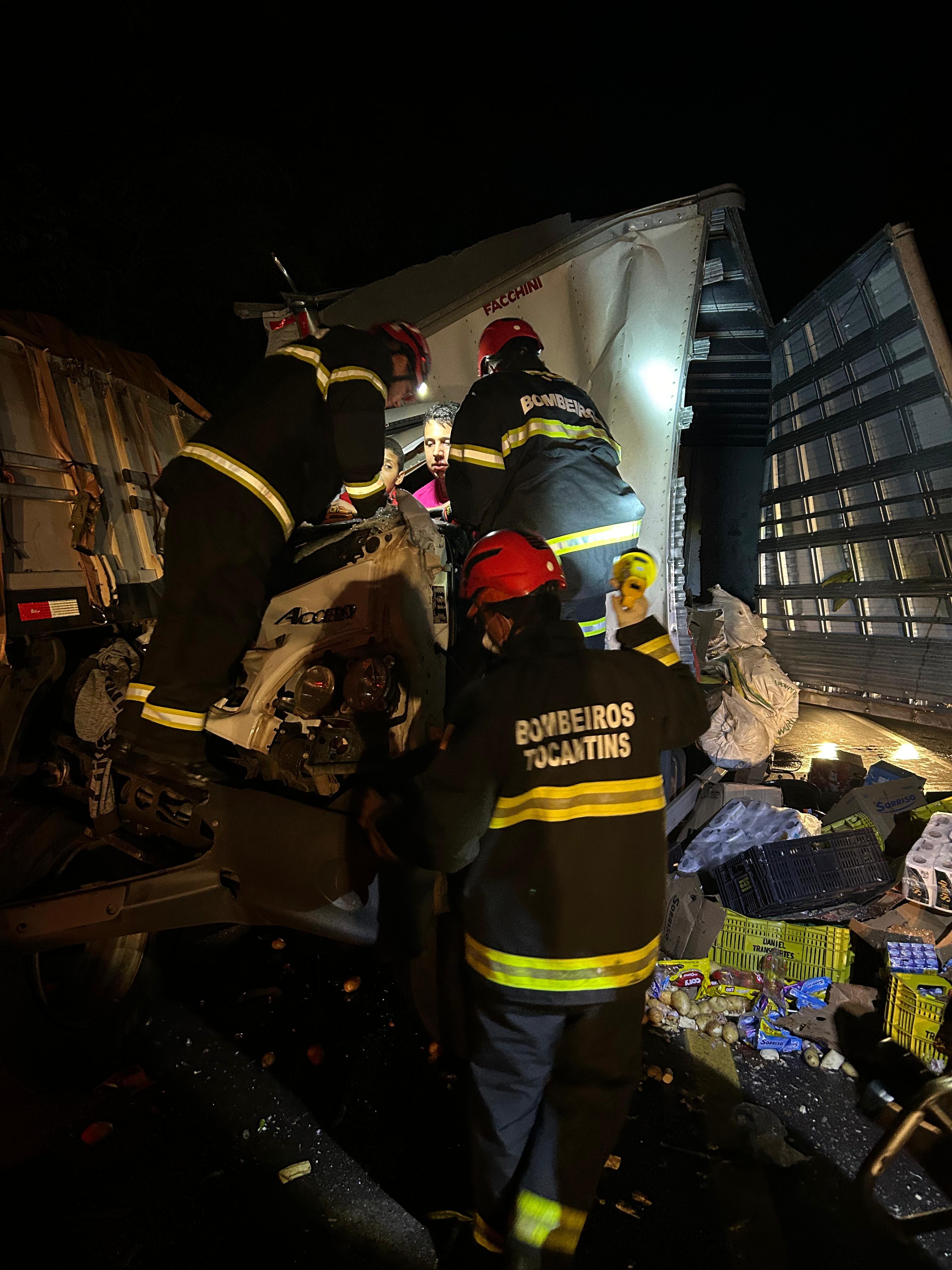 Uma pessoa morreu e duas ficaram feridas em uma batida envolvendo duas carretas, na madrugada desta quinta-feira (28), na BR-153, entre Pugmil e Paraíso do Tocantins.