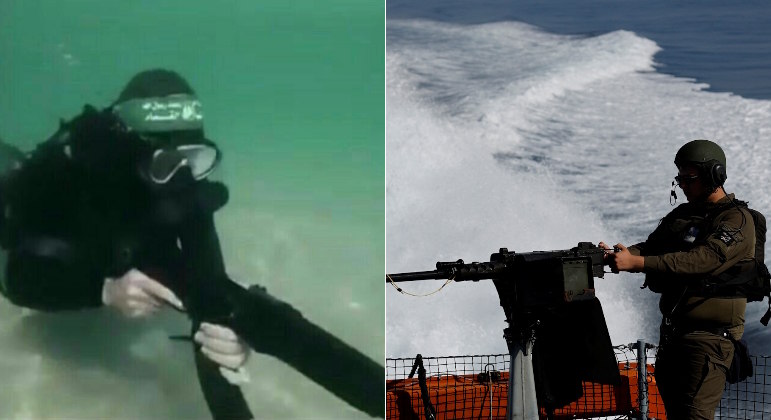 Metralhadora .50 apontada para o mar: Israel vigia costa com ameaça dos mergulhadores do Hamas