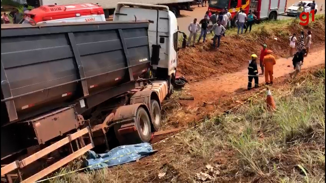 Corpo da vítima que morreu em acidente na BR-153 foi retirado debaixo de caminhão
