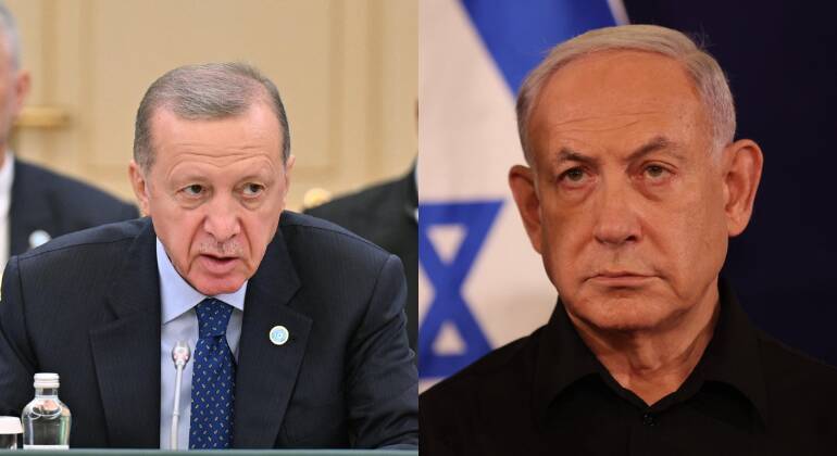 Recep Erdoğan (à esq.) e Benjamin Netanyahu (à dir.)