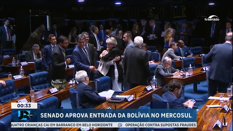 O Senado aprovou a entrada da Bolívia no Mercosul, em análise desde 2015, e agora o país vizinho terá quatro anos para concluir o processo de adesão e adotar as normas do bloco. O projeto já havia passado pela Câmara dos Deputados e agora, com o aval dos senadores, vai para a promulgação. Segundo o relatório do Senado, o ingresso da Bolívia no bloco vai otimizar o comércio e a cooperação, além de ampliar o mercado para empresas brasileiras.