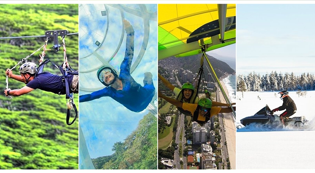 Conhecer paisagens exuberantes e arriscar um passeio de tirolesa no Havaí, voar de asa delta sobre a cidade do Rio de Janeiro (RJ) e andar de moto na neve do Alasca.