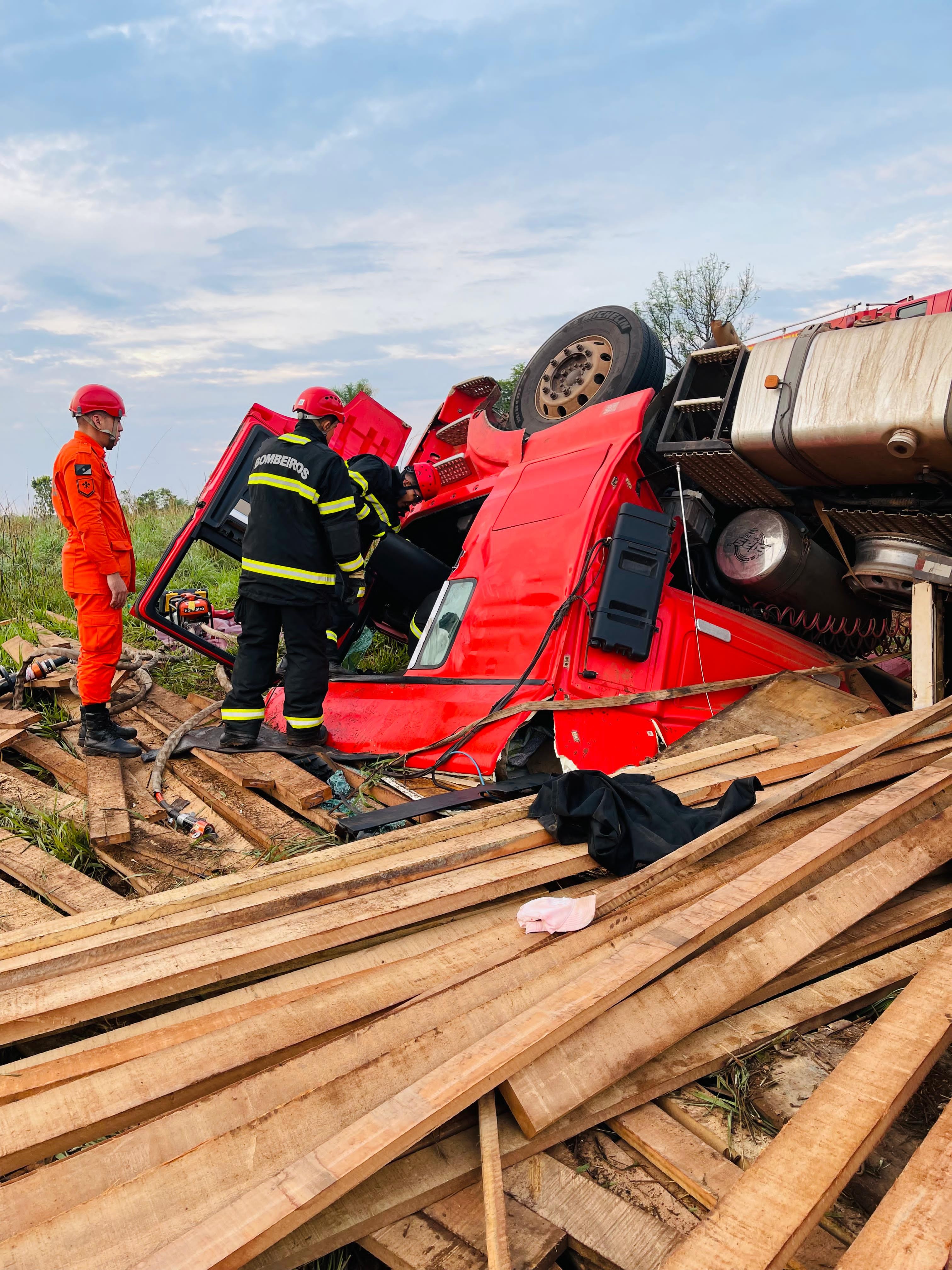 Os Bombeiros chegaram ao local por volta das 02h44 e só finalizaram os trabalhos às 07h15. Segundo as informações, a carreta estava carregada com madeira. A equipe precisou fazer o desencarceramento para retirar a vítima do local.
