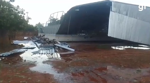 Quadra de escola em Talismã fica destruída após chuva com ventos fortes